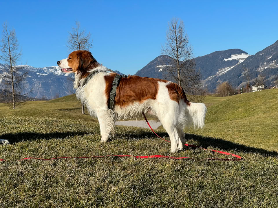 Wir waren auch schon wieder gemeinsam mit all meinen Hunden im Urlaub im Chiemgau mit noch einem anderen Rüden aus meiner Zucht. Bei einem Agility-Seminar-Wochenende war er auch als Maskottchen dabei und hat das entspannt in einem Hundehotel mit vielen anderen Hunden gemeistert.